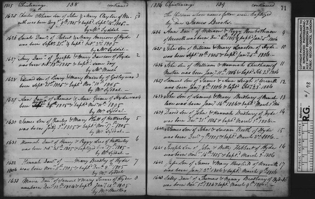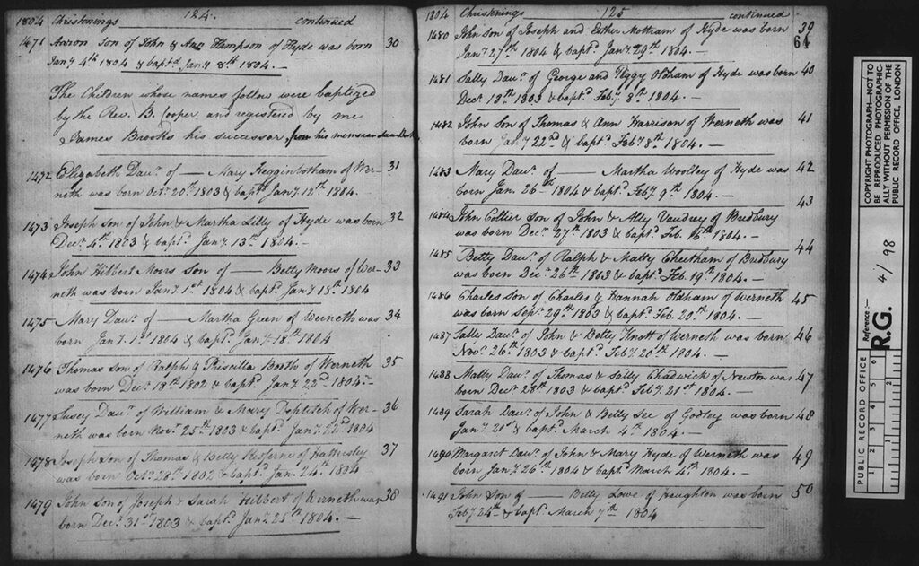 So if you have anyone you are researching who used Hyde Chapel then have some fun searching through Reverand Cooper and Reverand Brooks meticulous notes.