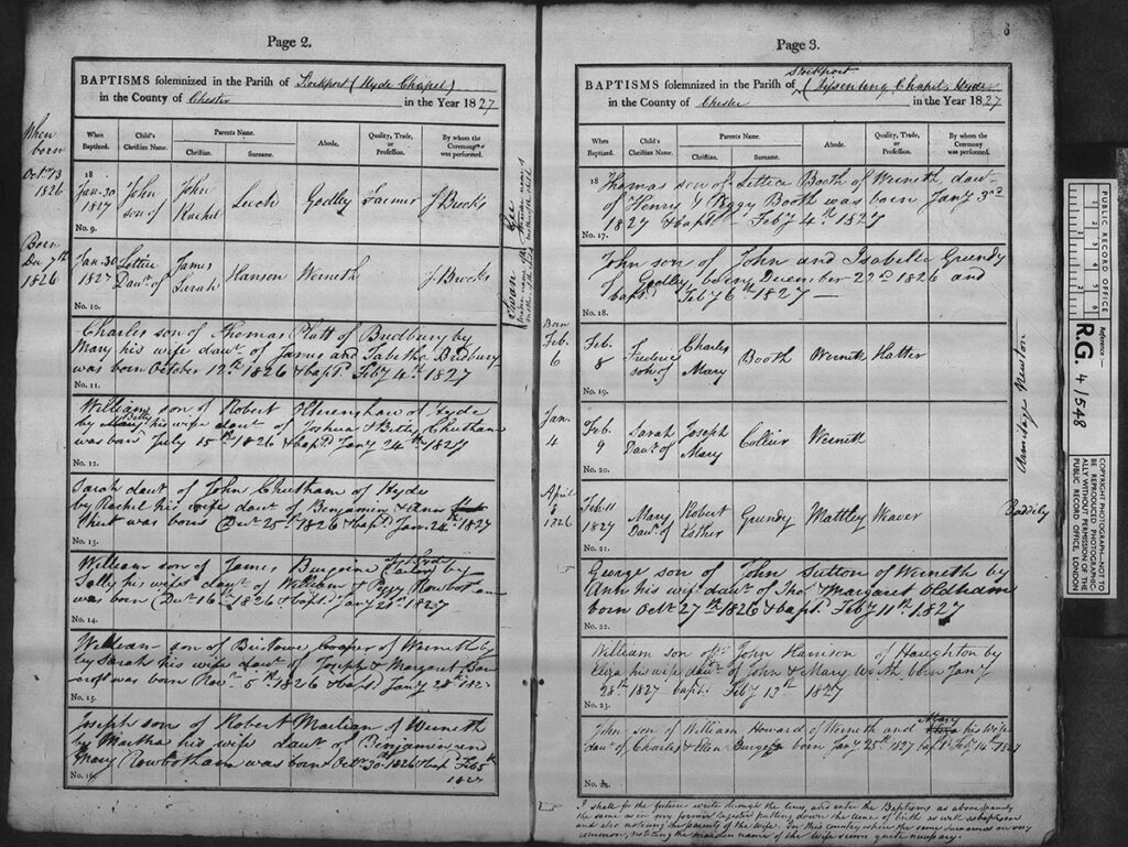 Using these records and FamilySearch’s Full Text Search, I have been able to go back another generation past Sarah Booth, to her mother Harriot Frith, daughter of Joseph Frith and his wife Hannah. Oy vey. I really have to update the blog on my research. Soon! You can bet I’m also searching through these Hyde Chapel baptisms for William Travis and Thomas Booth!